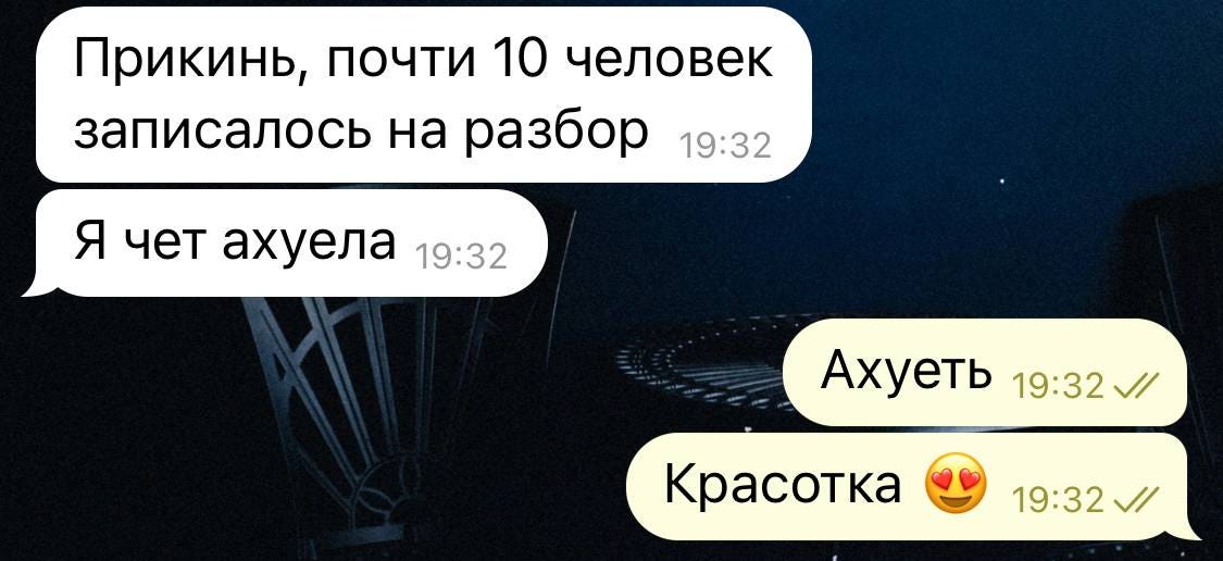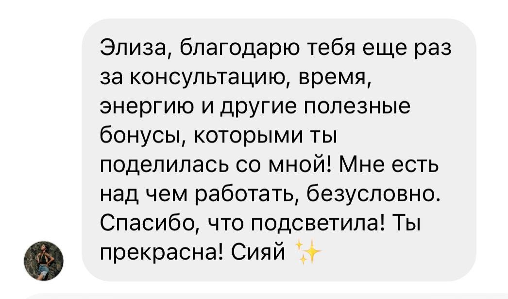 Чтобы попасть на разбор, перейди в мой телеграм и отправь кодовое слово “разбор”. Я задам несколько уточняющих вопросов и мы договоримся о созвоне.