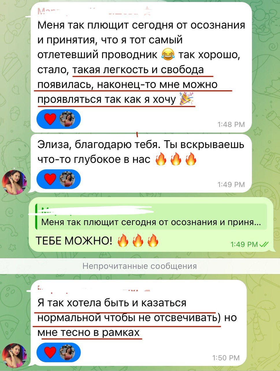 👉 Мы разбиваем ограничивающие убеждения наших клиентов и помогаем реально увидеть главный инсайт для себя - , насколько мы реально можем изменить их жизнь. Могут быть и другие инсайты у разнвх клиентов, но суть одна.
